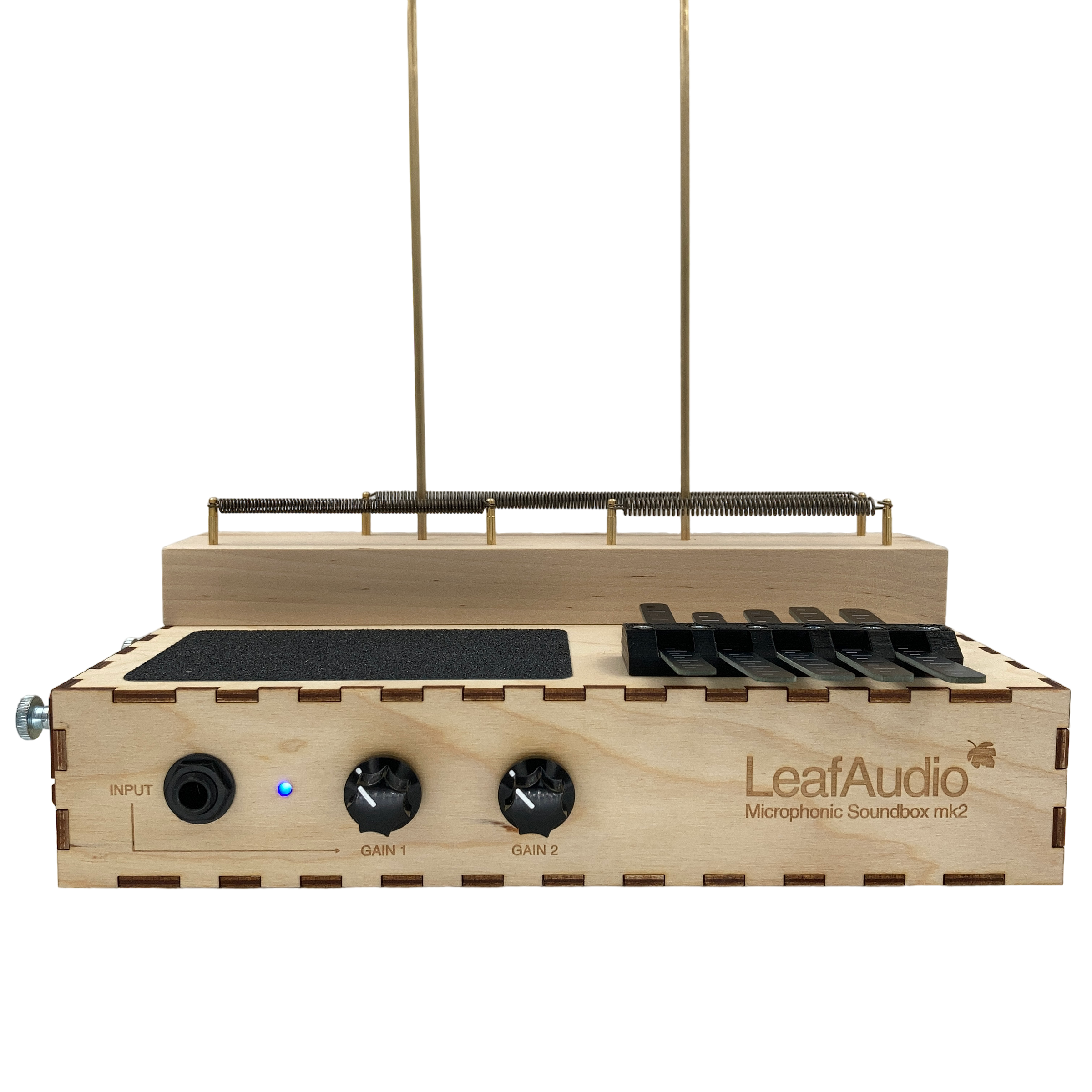 The Microphonic Soundbox is an instrument for experimental sound creation. It features a resonant wooden body equipped with contact microphones, battery-powered low-noise preamps and a variety of sound-generating surfaces, including springs, rods, textured panels and a kalimba. Use it standalone to create textures and samples or pair it with delay and loop-based effects for evolving soundscapes.