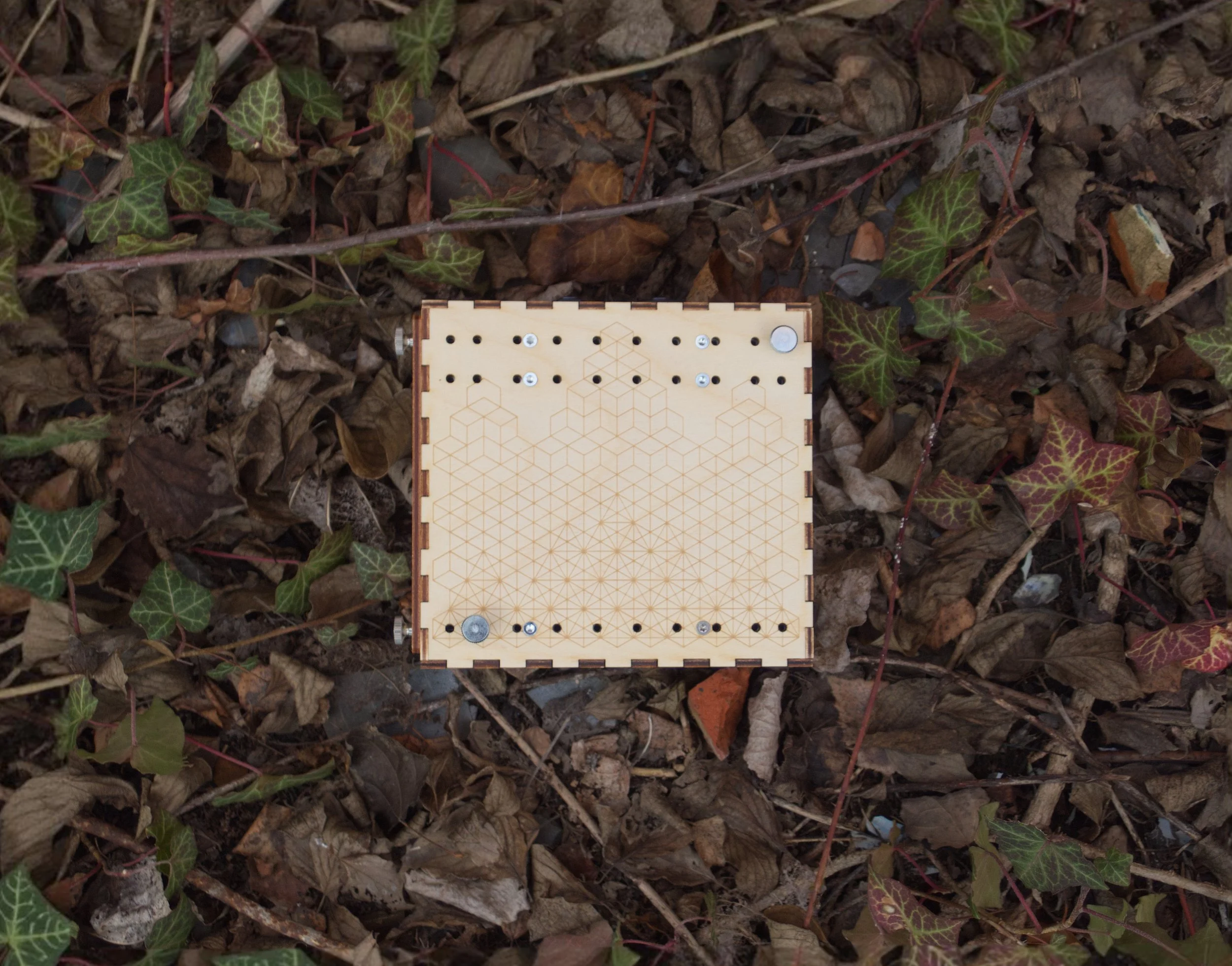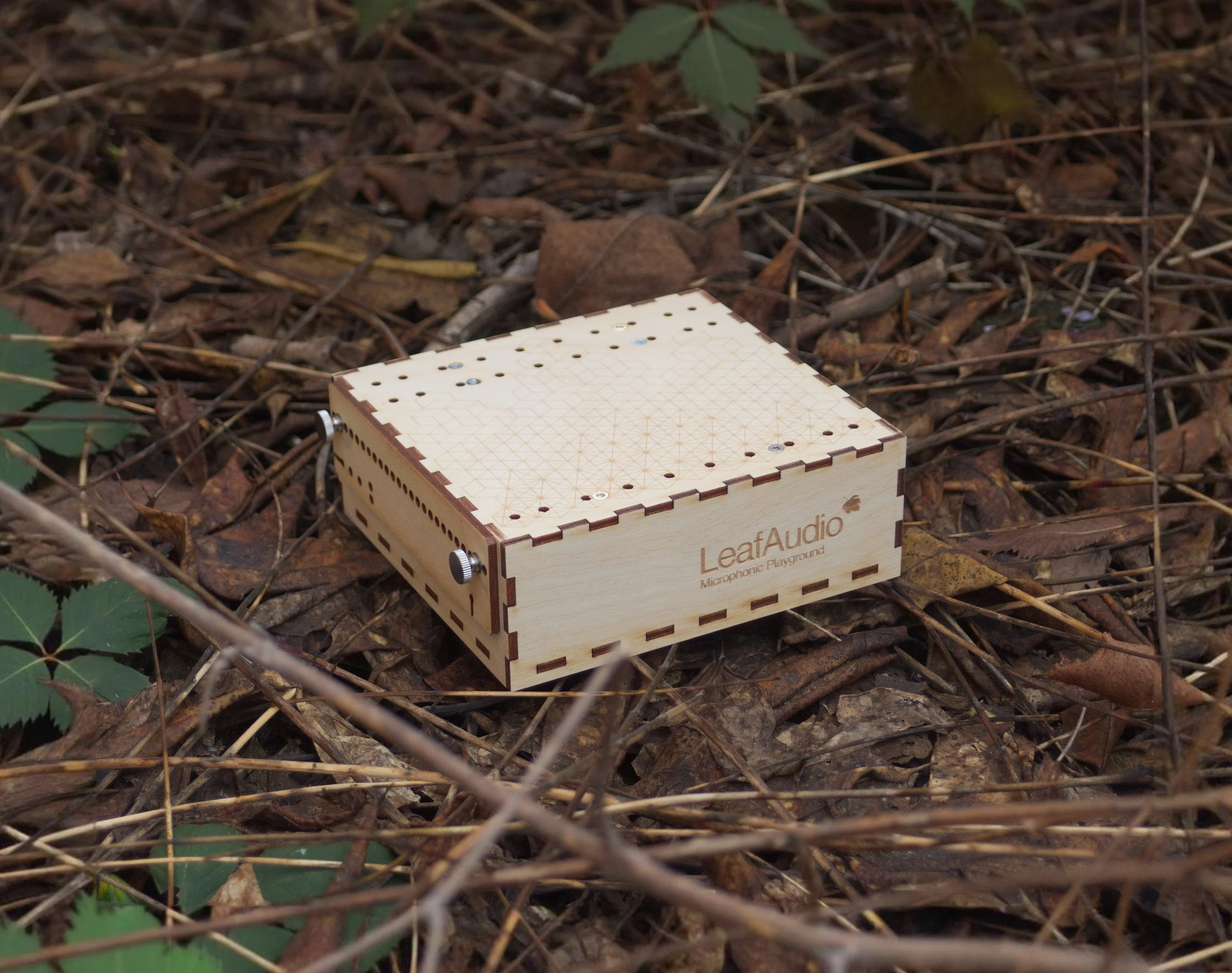 The Microphonic Playground is a tactile wooden box with a built-in contact microphone and multiple mounting options, including M3 threaded strips, a wooden holder, and thumb screws. Attach found objects, springs, or materials of your choice and capture body-borne sound vibrations as you interact with your instrument.